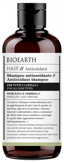 Bioearth Hair 2.0 Antioxidant Shampoo - Spirulina and Vervain 250ml is a remineralizing shampoo for frequent washing of all types of hair. Spirulina, an alga rich in protein, vitamins, minerals and antioxidants, helps to combat the effects of oxidative stress and protects hair from external aggressions and pollution.
