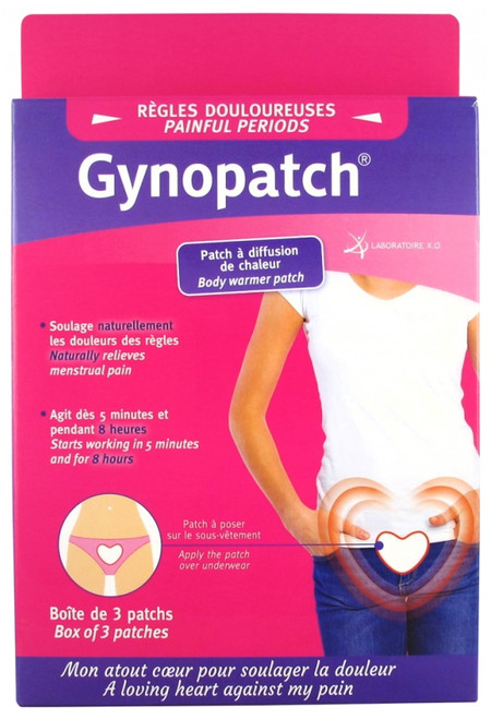 Laboratoire X.O Gynopatch Painful Menstruation 3 Patches is a single-use heating patch that naturally relieves menstrual pain and acts from 5 minutes and for 8 hours.