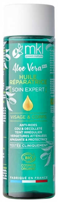 MKL Green Nature Aloe Vera Organic Repair Oil 75ml is a repair oil for the face and body. This repairing oil allows to find a soft, relipidated, smoothed skin and protected from external aggressions. Soothed and repaired, it will regain its comfort and suppleness. The repairing oil is composed of 4 natural active ingredients essential to the repair, hydration and prevention of stretch marks for a soothed, protected and unified skin.