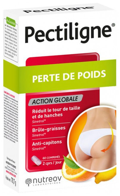 Nutreov Pectiligne Perte de Poids 60 Comprimés is a dietary supplement based on Sinetrol®, orthosiphon, green tea and vitamin C.