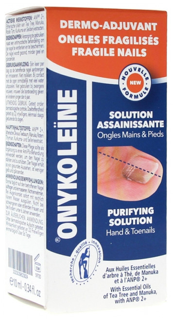 Akileïne Onykoleïne Sanitizing Solution Hands and Feet Nails 10ml is a solution for weakened and/or yellowed nails. This treatment is to be used in addition to an anti-fungal treatment to strengthen the nail and protect it. The nail thus finds a healthy aspect, less yellow and more brilliant.