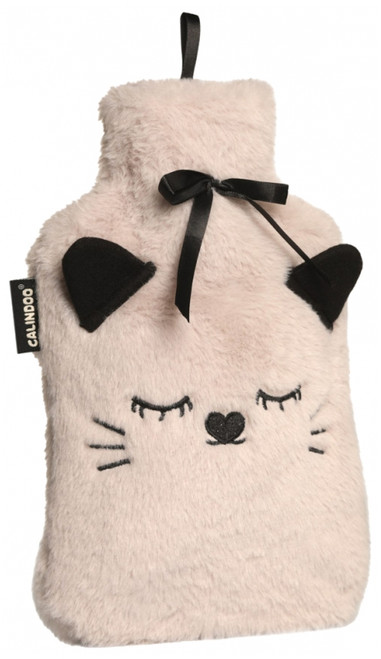 Calindoo Water Warmer with Kitty Cover 1.5L is a rubber hot water bottle with a 100% machine-washable acrylic cover. It can be used hot or cold.