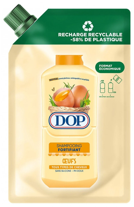Dop Fortifying Egg Shampoo All Hair Types Eco-Refill 500 ml is ideal for soft, shiny hair full of vitality.