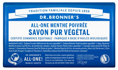 Dr Bronner's All-One Pure Vegetable Soap 140g - Fragrance: Peppermint is a biodegradable pure vegetable soap made from organic oils.