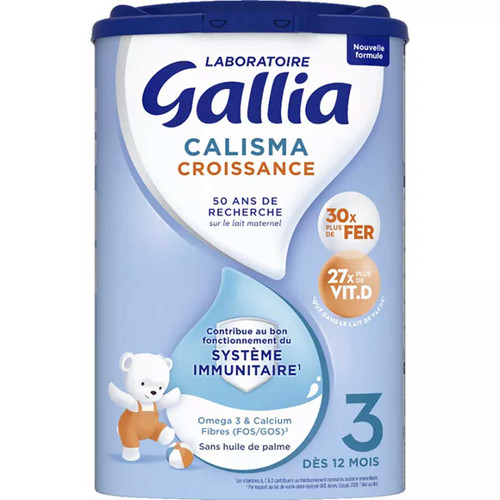 For over 30 years, Gallia's team of pediatricians, nutritionists and scientists has been inspired by the benefits of breast milk to create unique infant formulas. In line with regulations, Gallia Calisma Croissance 3 is developed with Pronutra+ technology, to offer your child nutrition tailored to his or her specific needs. At birth, your baby's immune system is still developing. That's why Gallia has developed Calisma Croissance with Pronutra+, a formula that contributes to the healthy development of your baby's immune system from the age of 12 months. By choosing Gallia Calisma Croissance 3, you're offering your child quality nutrition to support their growth and harmonious development.