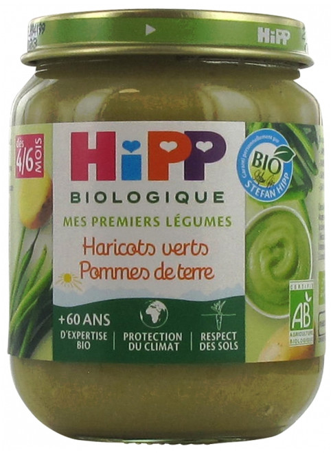 HiPP My First Vegetables Green Beans Potatoes From 4/6 Months Organic 125g is a green bean and potato puree adapted to children.