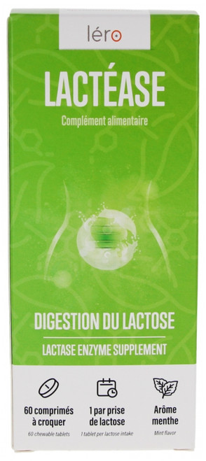 Léro Lactéase Lactose Digestion 60 Tablets to Chew is a food supplement which improves digestion of Lactose and thus dairy products.