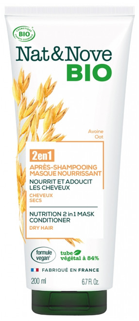 Nat&Nove Bio Oat Nutrition 2in1 Mask Conditioner 200ml is a care with organic oat extract and phyto-ingredients that nourishes and repairs dry hair without weighing it down. Its melting texture and vegetal note provide a real moment of pleasure.