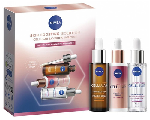Nivea Cellular Routine Set Serums for Layering is designed to fight the signs of skin aging and restore your skin's natural radiance.