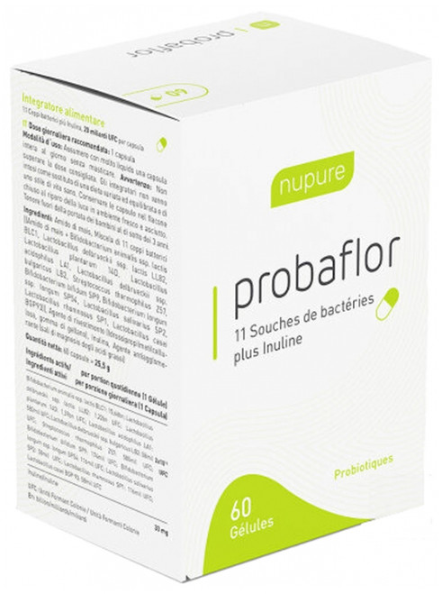 NuPure Probaflor 60 Capsules is a food supplement containing 11 different strains of lactic acid bacteria and bifidobacteria, selected for their specific properties. Probaflor supplies the intestine with 20 billion CFU of bacteria per capsule.