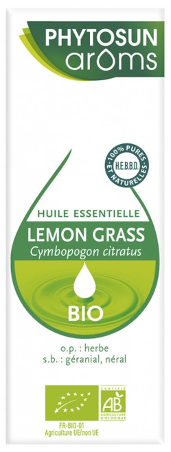 Phytosun Arôms Lemon Grass (Cymbopogon citratus) Organic Essential Oil 10 ml is a 100% pure and natural essential oil.
