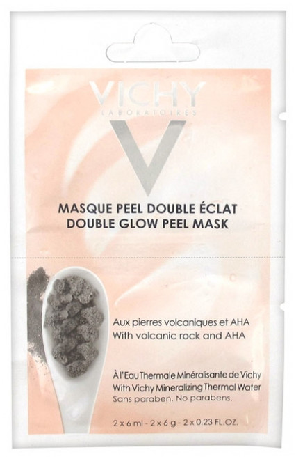 Vichy Double Glow Peel Mask 2 x 6ml with water gel texture with fruity notes gently exfoliates, refines the skin texture and highlights the complexion.
